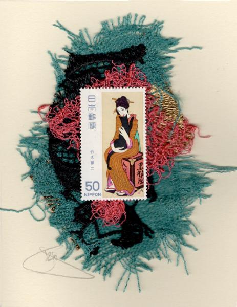 Note: I have a few more of these stamps but please be aware that the background materials may be different as I use remnants in my designs. Thank you!